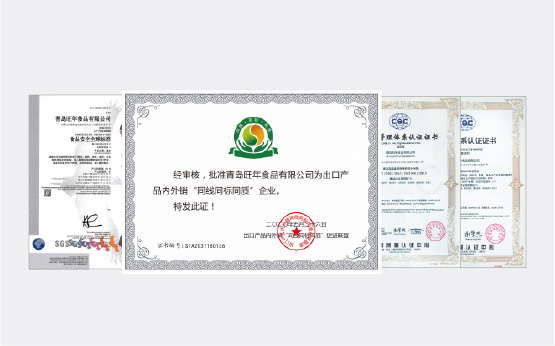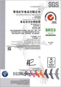 旺年堅(jiān)持以食品安全作為發(fā)展的基石,除通過(guò)ISO9001、ISO14001、ISO45001、HACCP等體系認(rèn)證外,還成為了業(yè)內(nèi)為數(shù)不多具備出口食品生產(chǎn)企業(yè)資質(zhì)、通過(guò)英國(guó)零售商協(xié)會(huì)(BRC)頒發(fā)的全球食品安全標(biāo)準(zhǔn)A級(jí)認(rèn)證并獲得出口產(chǎn)品內(nèi)外銷“三同”證書(shū)的企業(yè)之一,產(chǎn)品出口美國(guó)、加拿大等多個(gè)國(guó)家和地區(qū)。